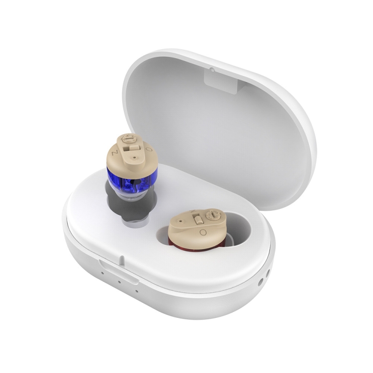 2. Type-C port, cycle charging, the blue light indicates that the hearing aid is being charged, and the blue light is off to indicate that the hearing aid is fully charged