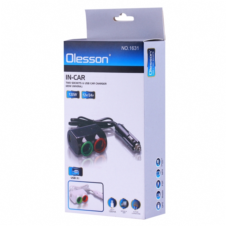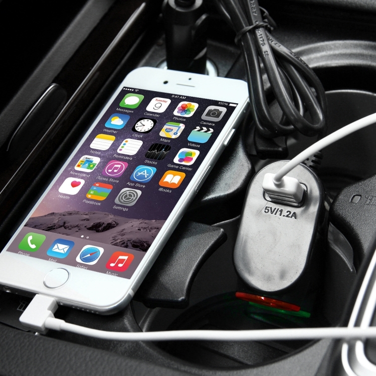 Olesson Streamlined Design 1.2A USB Car Cigarette Lighter Socket Car Charger with Color LED Light