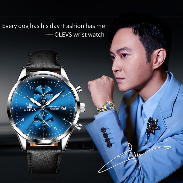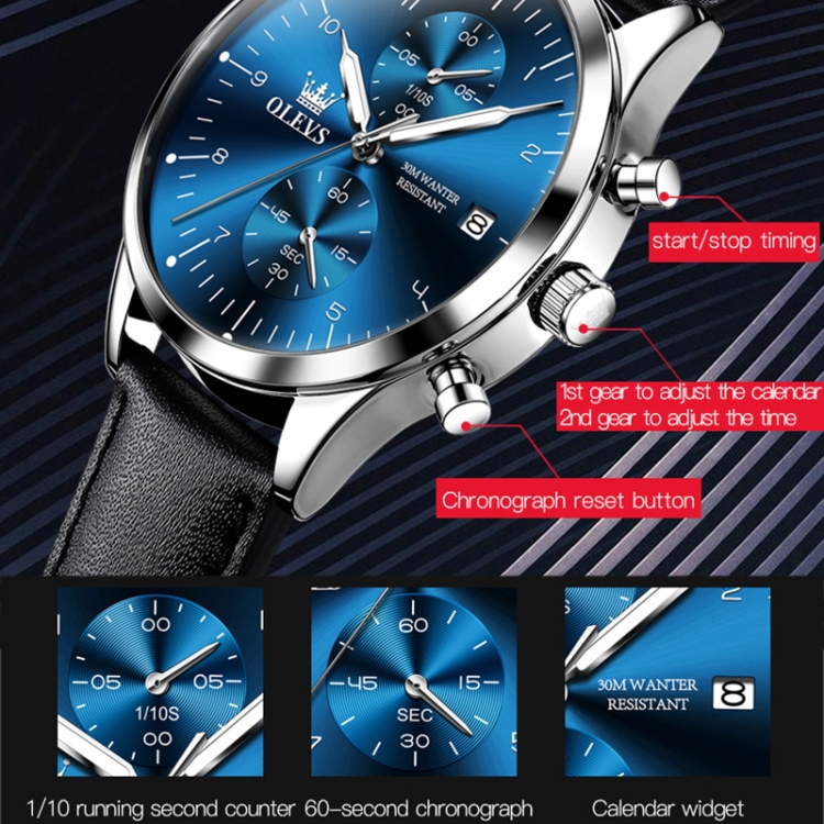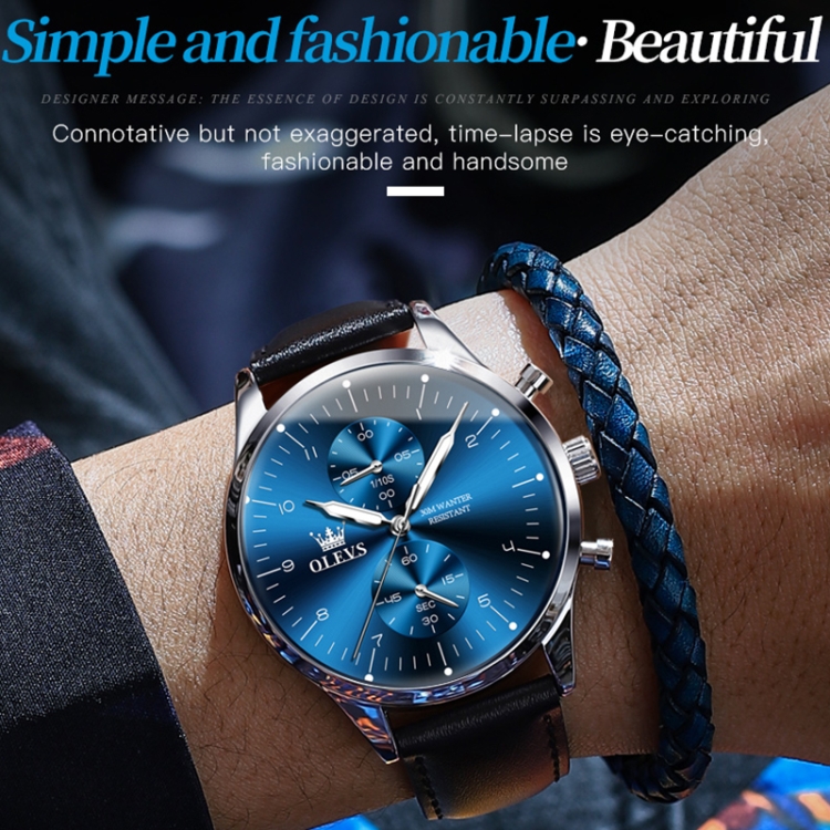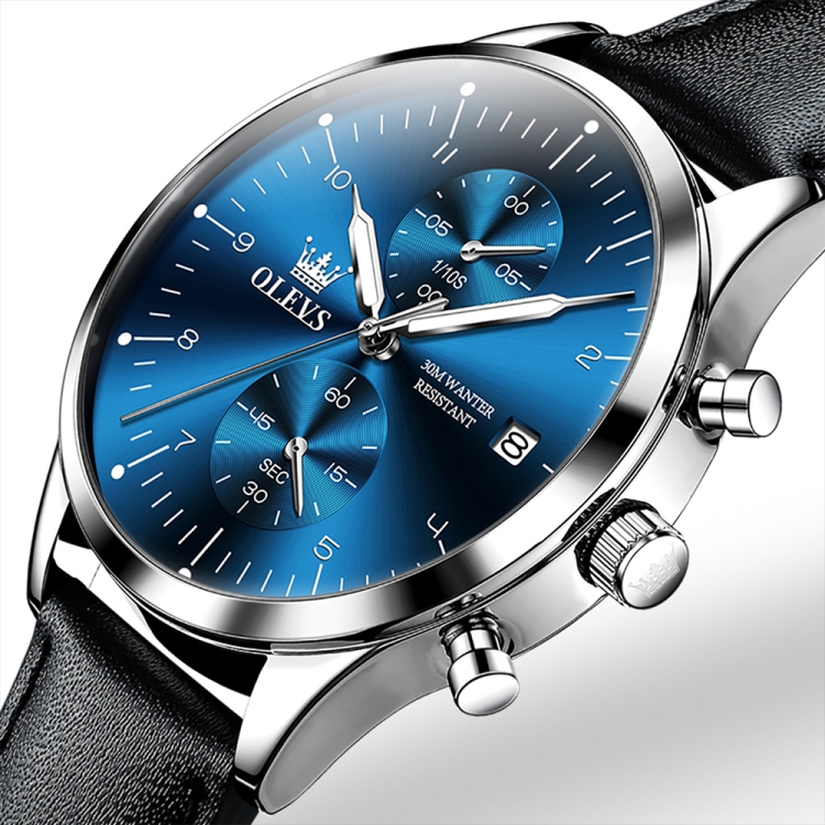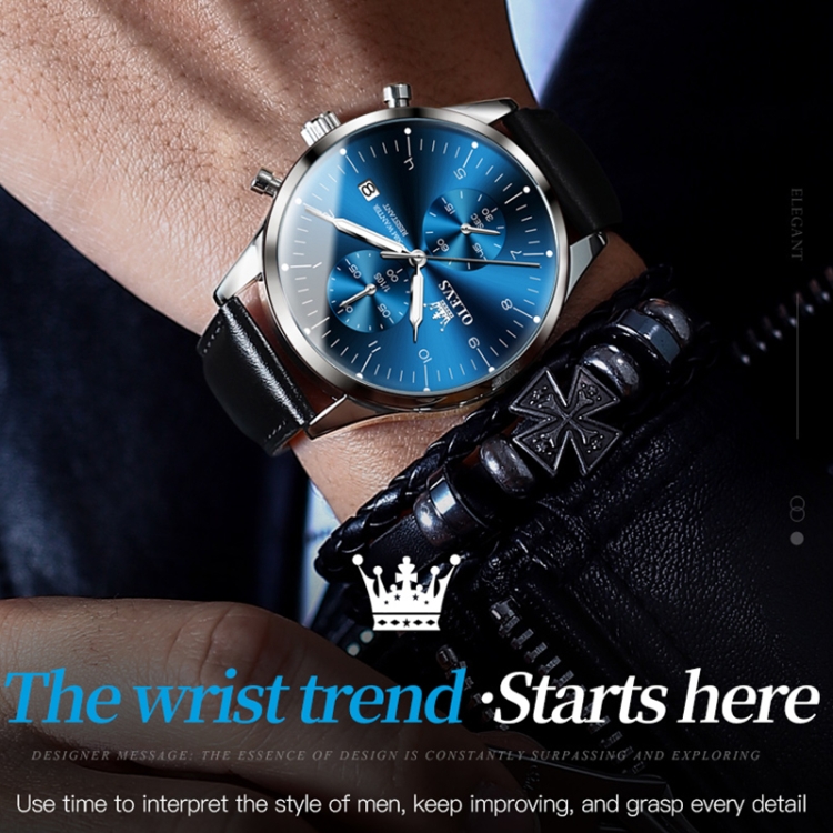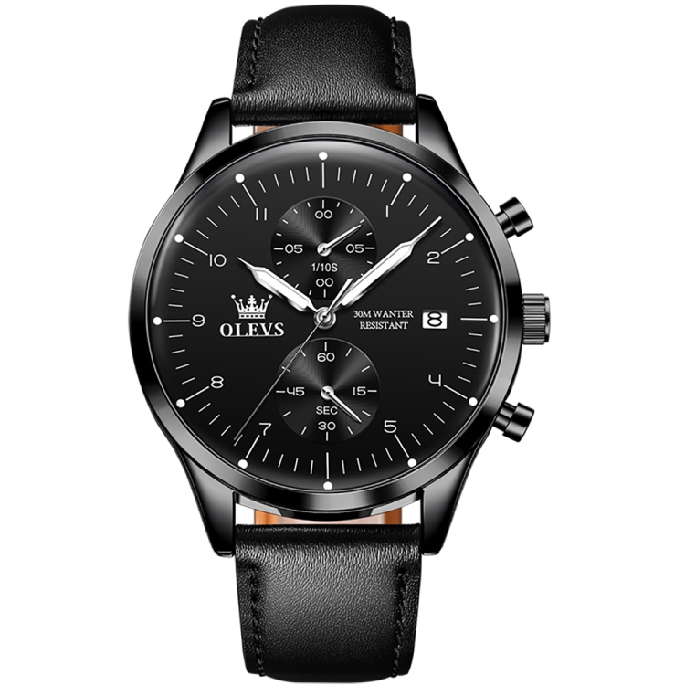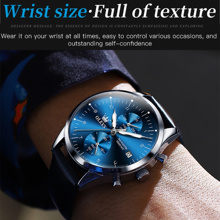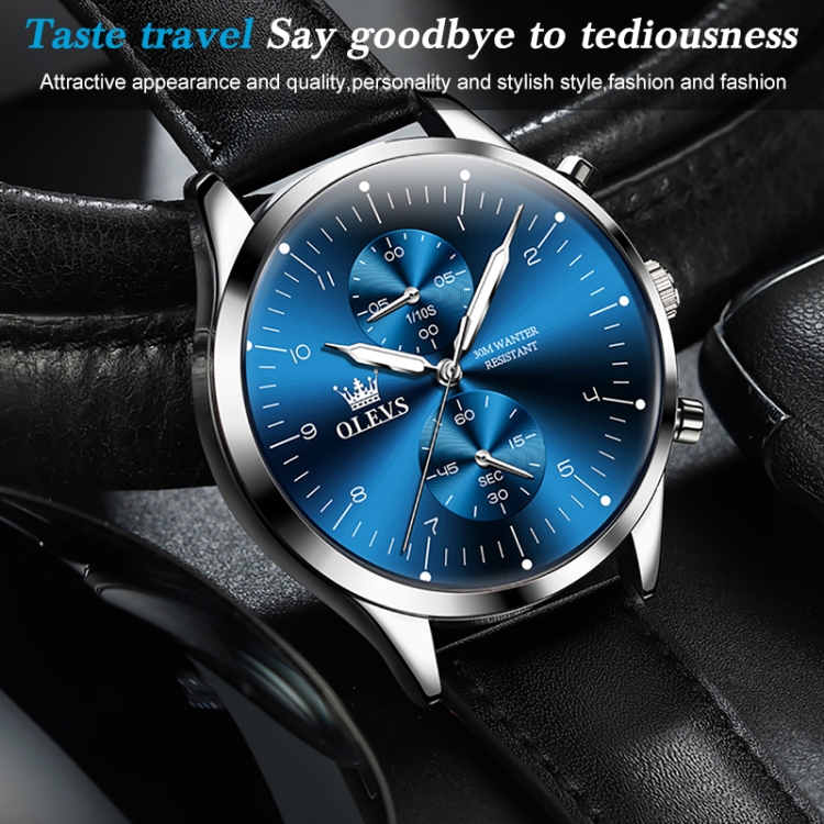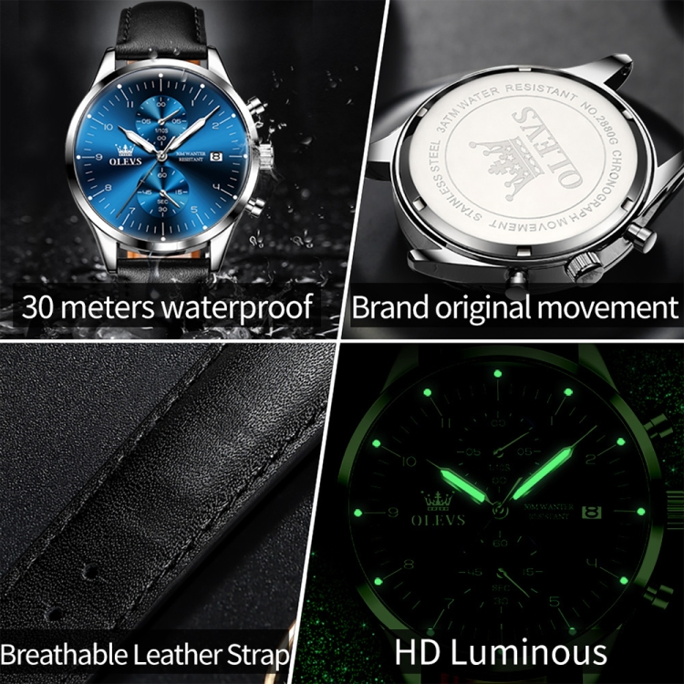 OLEVS 2880 Men Multifunctional Business Waterproof Leather Strap Quartz Watch