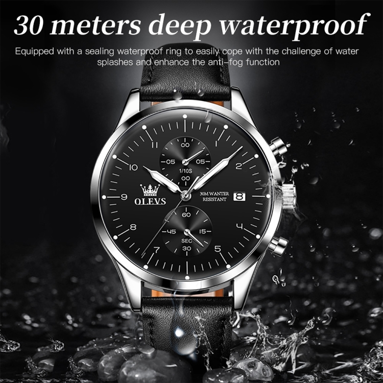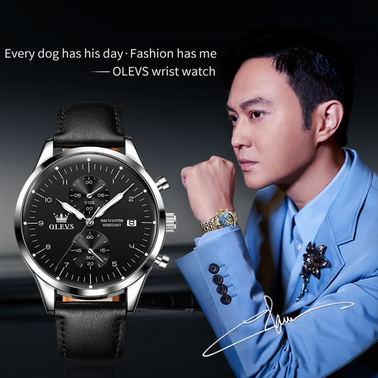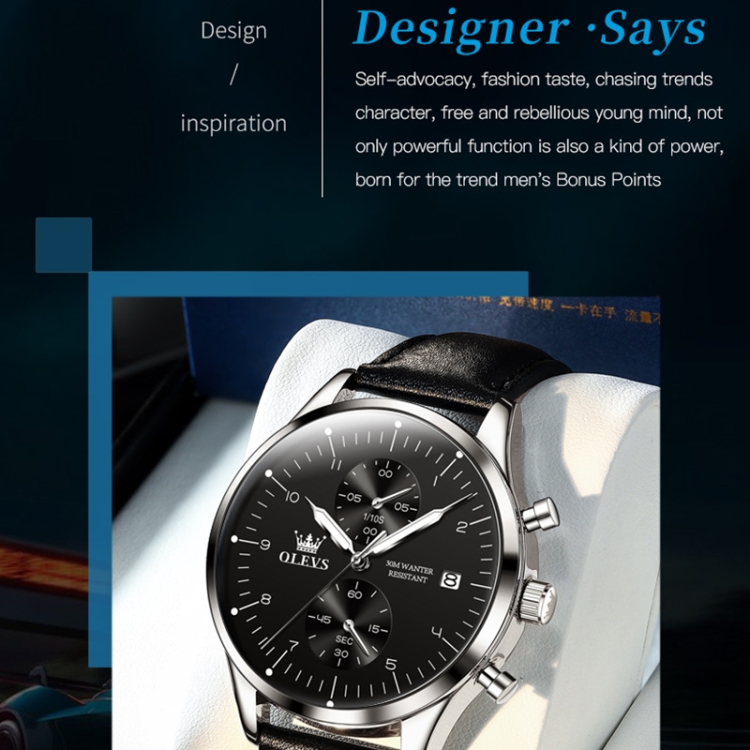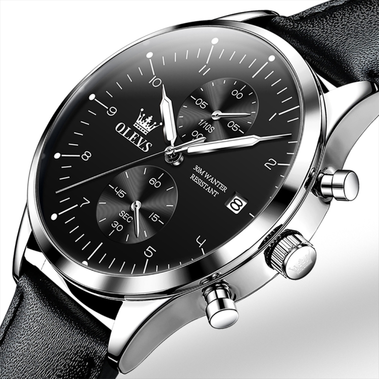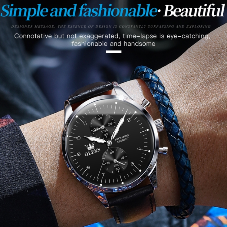 OLEVS 2880 Men Multifunctional Business Waterproof Leather Strap Quartz Watch