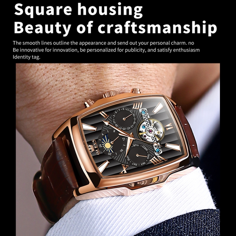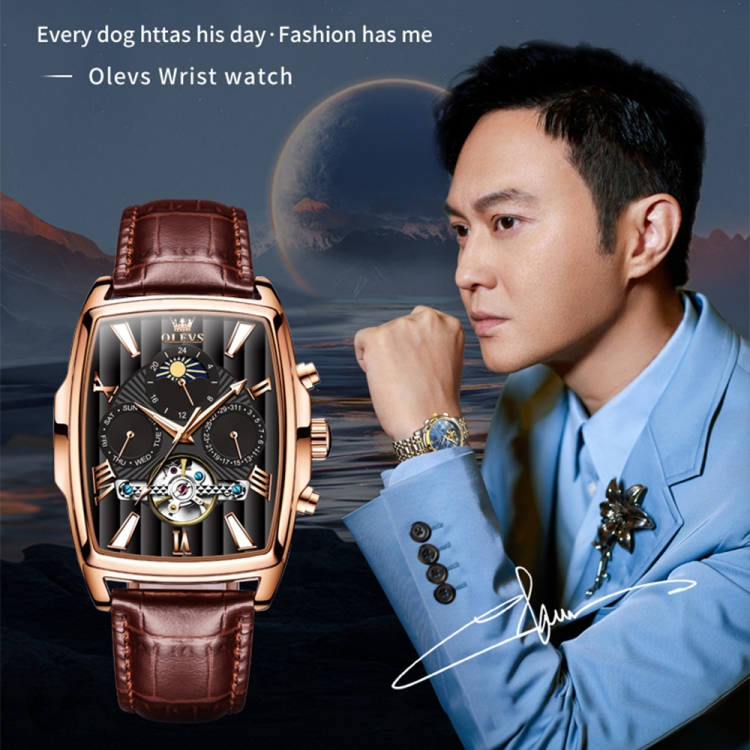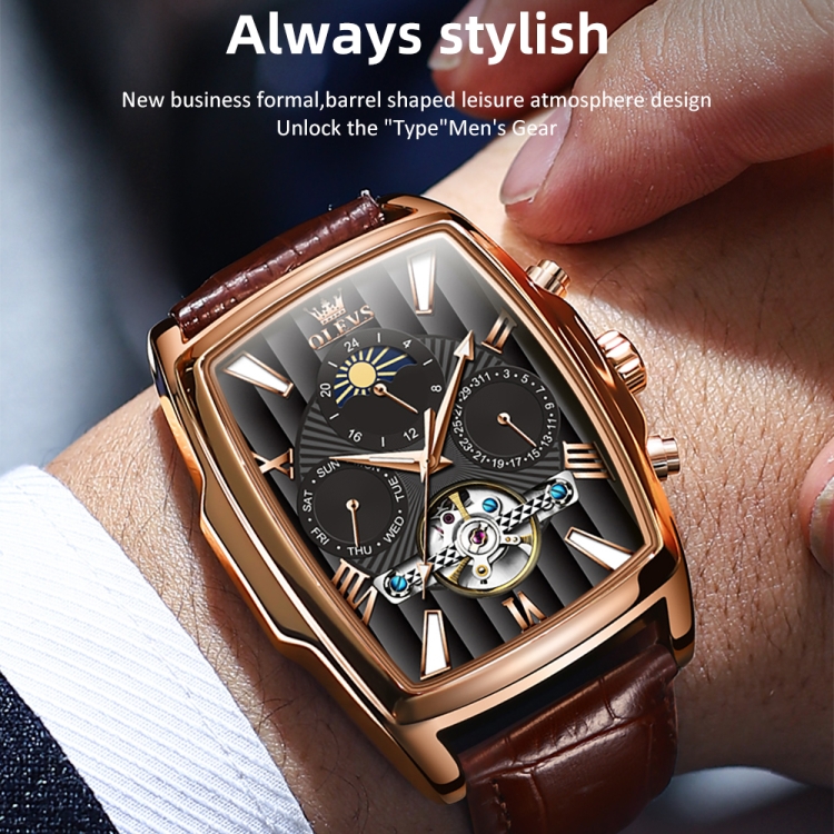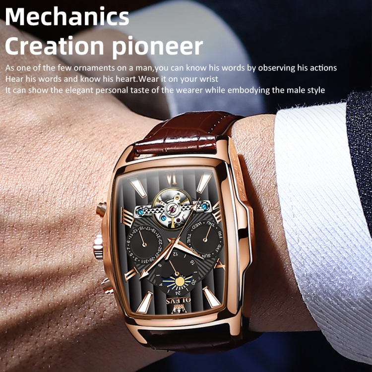OLEVS 6675 Men Multifunctional Moon Phase Tourbillon Mechanical Watch