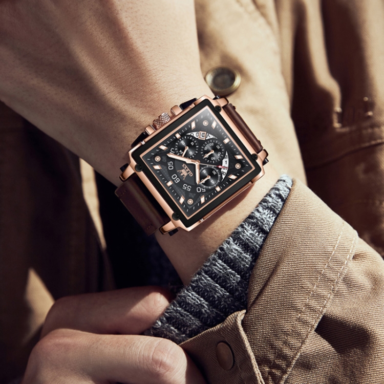 OLEVS 9919 Square Dial Chronograph Luminous Quartz Watch for Men