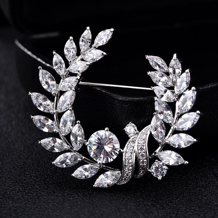 Olive Branch Grass Ring Zircon Brooch Exquisite Accessories Medal Fashion Brooch Coat Sweater Pin