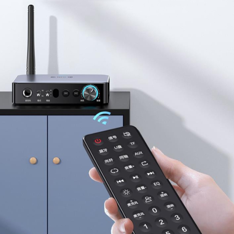 9. Interface type: input: 3.5mm AUX + RCA + USB + TF interface + 6.5 MIC + coaxial; output: 3.5mm AUX + RCA