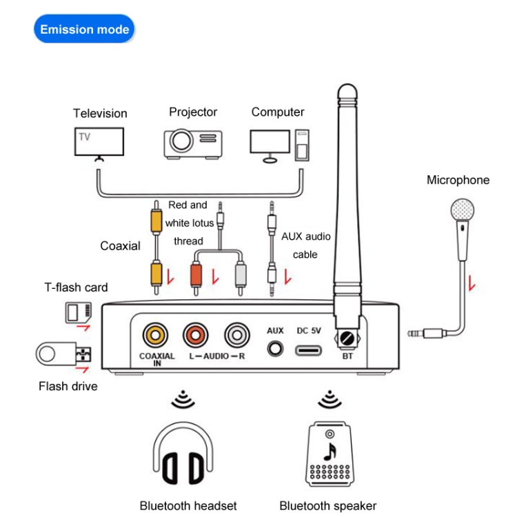 2. Bluetooth receiver, bluetooth transmitter 2-in-1