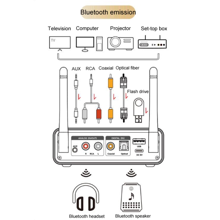 6. Built-in digital signal to analog chip, support for digital fiber, coaxial, AUX, RCA interface