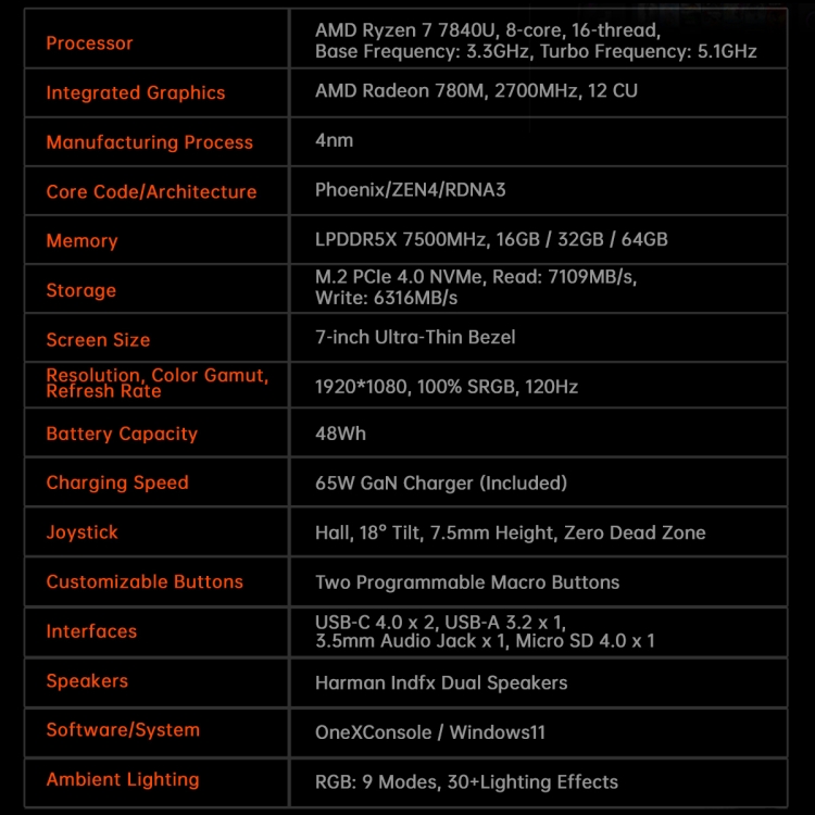 ONE-NETBOOK ONE XFLY 7 inch Handheld PC Game Console, Windows 11 AMD Ryzen 7 7840U
