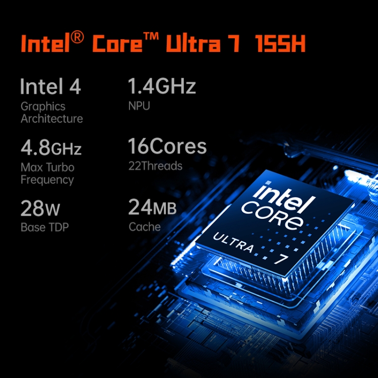 2. Intel Core Ultra 7 155H CPU, 16 cores 22 threads, high performance, run fast, and operate smoothly.