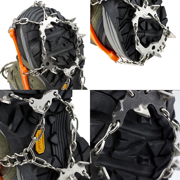 One Pair 19 Teeth Anti-Slip Ice Gripper Hiking Climbing Chain Shoes Covers, Size: M