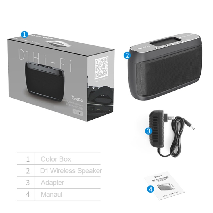 OneDer D1 60W Portable HiFi Bass Wireless Bluetooth Speaker, Support Hands-free / USB / AUX / TF