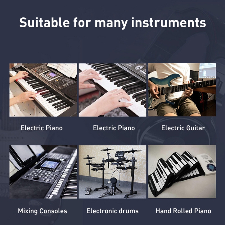 6. Dual jack design, not only has a 6.5mm interface suitable for various musical instruments, but also a 3.5mm interface suitable for mobile phones, computers, tablets and other devices.