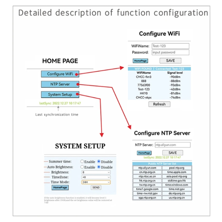 5. Automatically adjust the time through the network every day to keep the time accurate for a long time