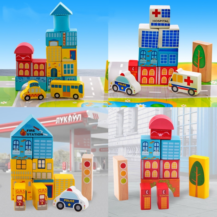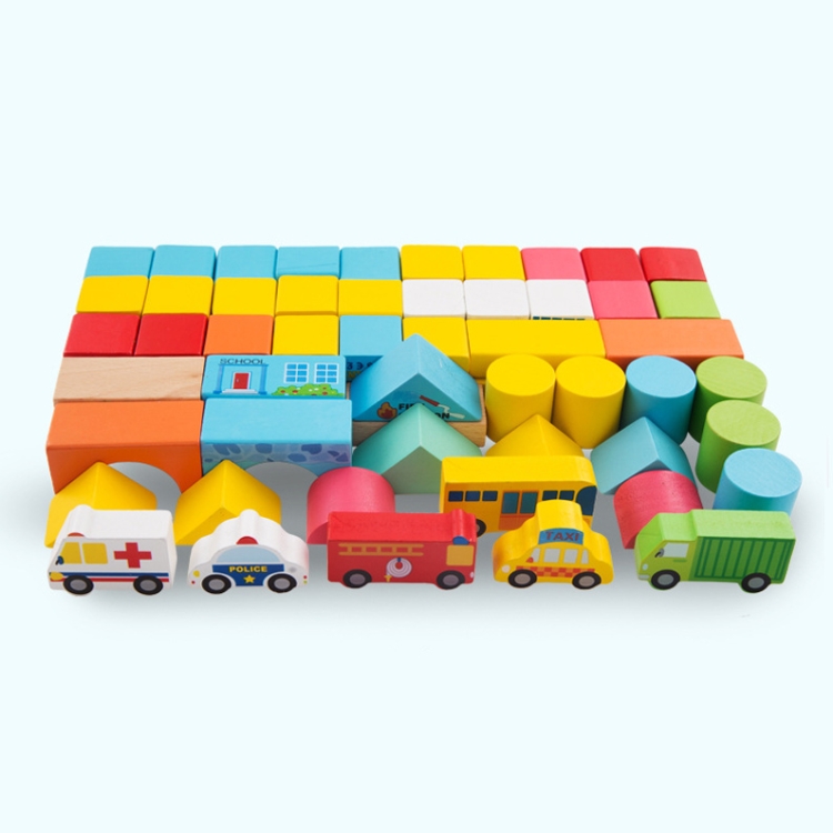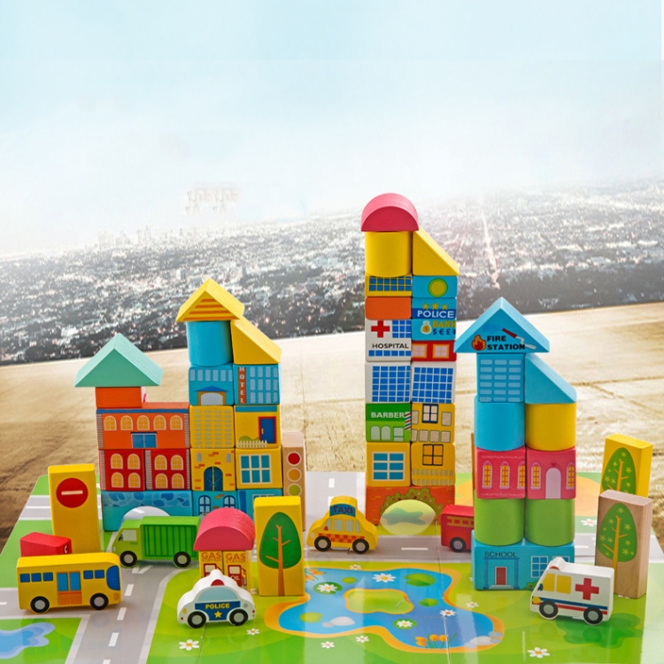 Onshine Wooden Puzzle Children Toy 62 PCS City Traffic Scene Building Blocks