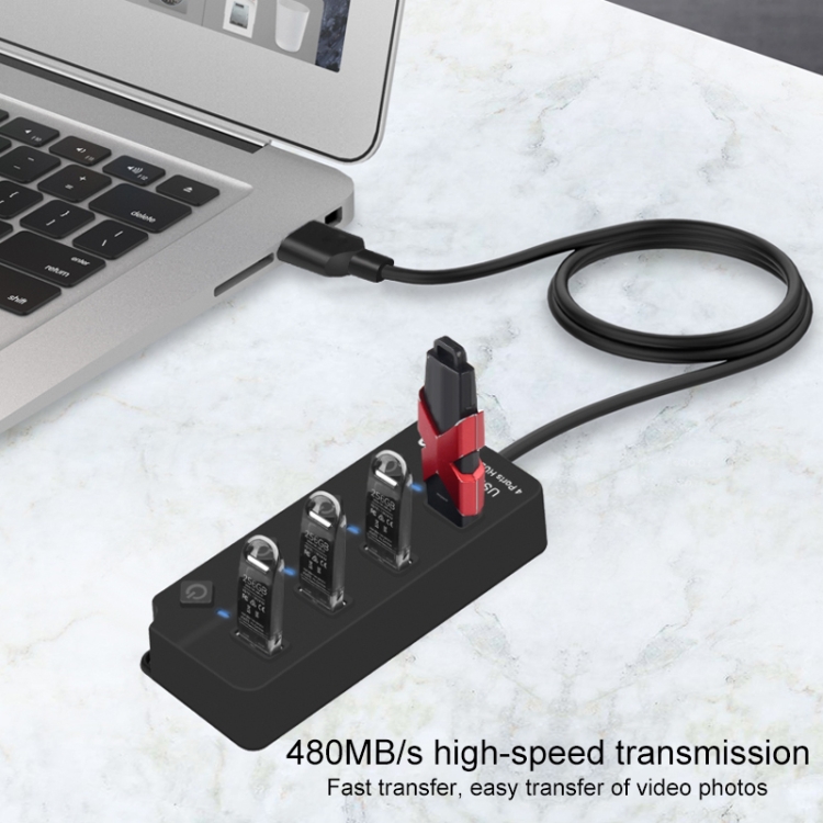Onten 5301 USB 3.0 Male to 4 USB 2.0 Female Splitter Extender with Independent Switch