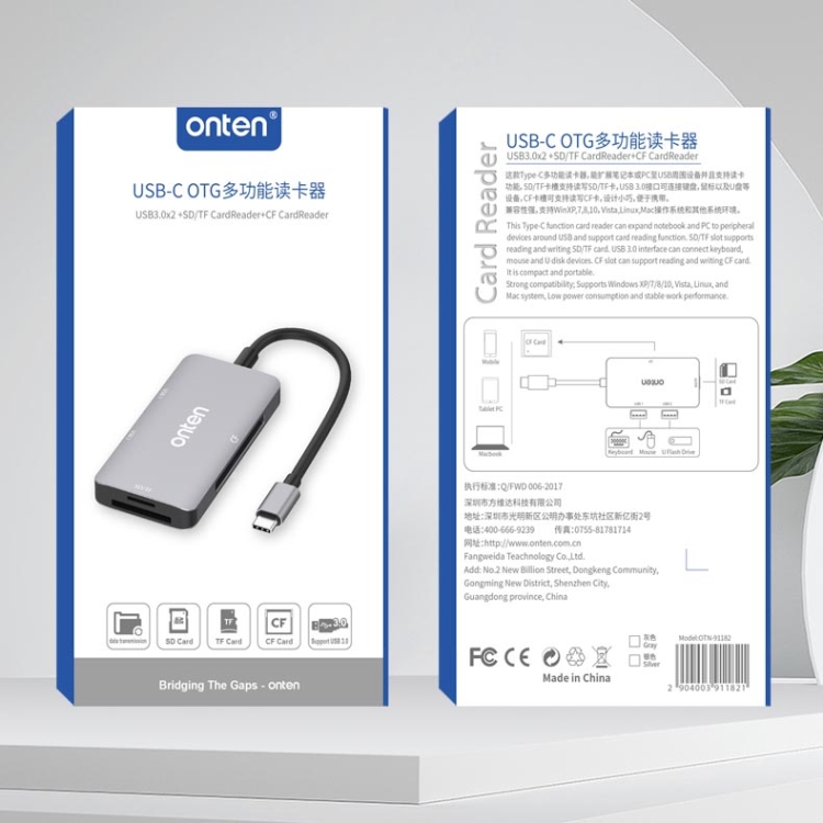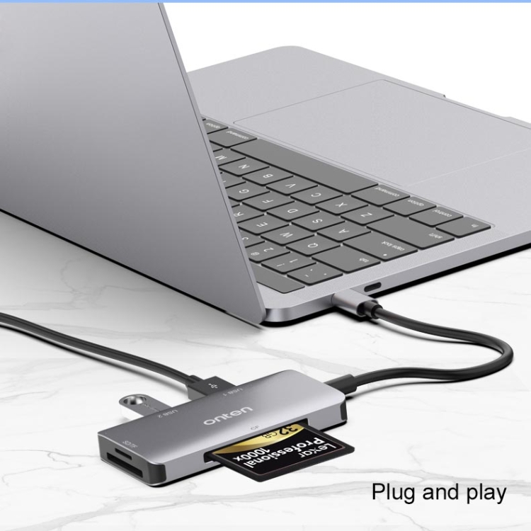 Onten 91882 5 In 1 USB3.0 x3 + SD + TF + CF Type-C / USB-C OTG Multi-function Card Reader