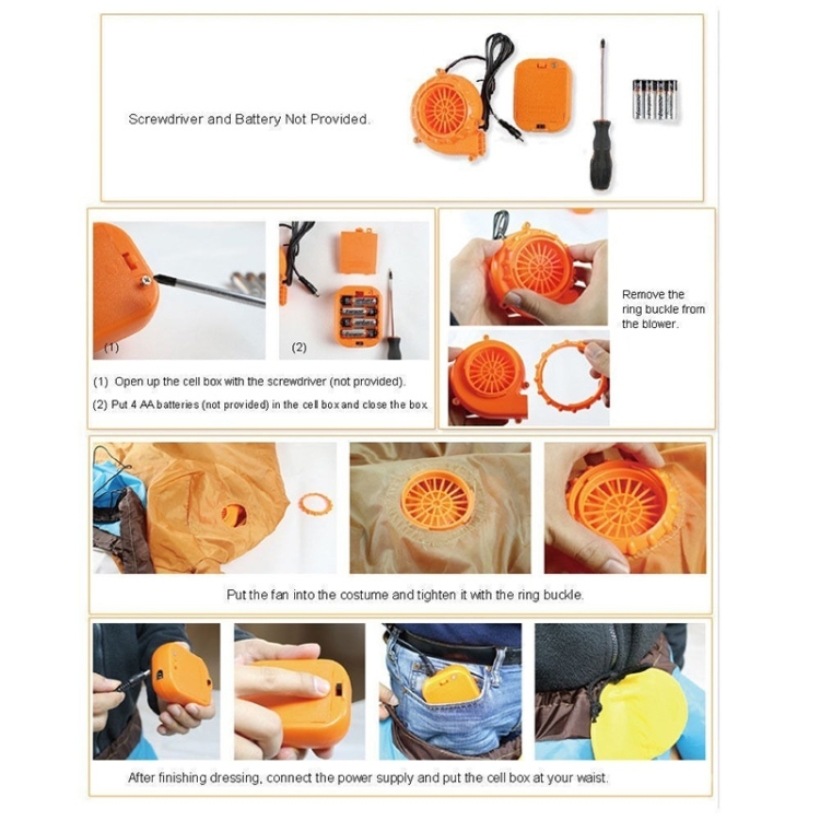 1. It is easy to inflate and put on: simply step into the costume, turn on the fan (discreetly hidden inside the outfit) and you will be fully inflated within 60 seconds.