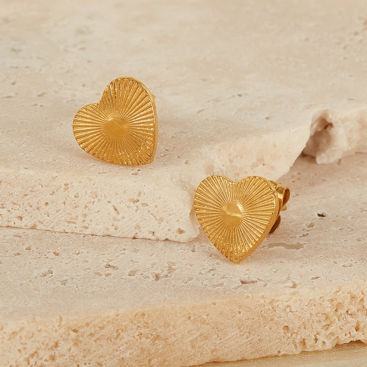 OPK GE940 1pair Vintage Stainless Steel Peach Heart Stripe Earrings