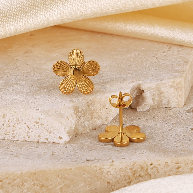OPK GE941 1pair Vintage Stainless Steel Flower Earrings