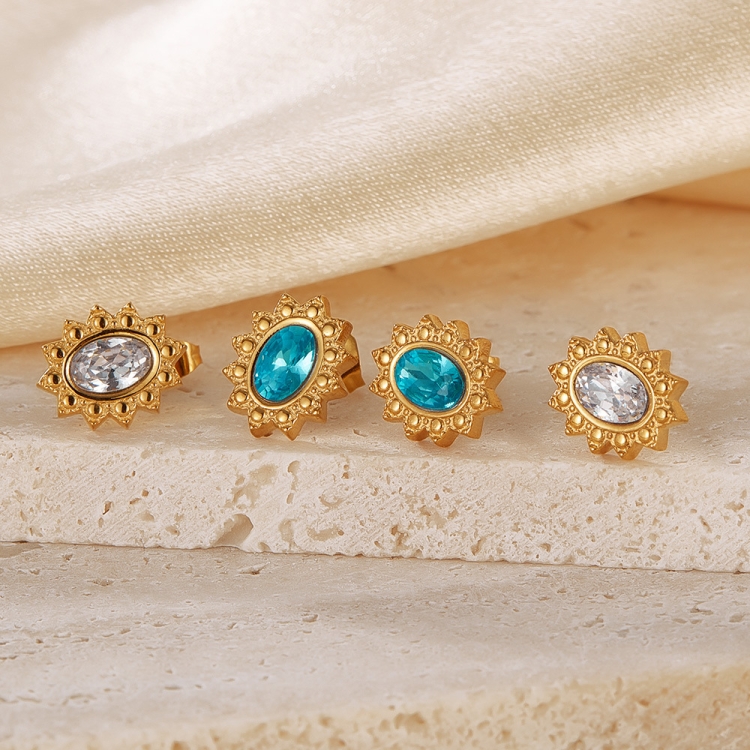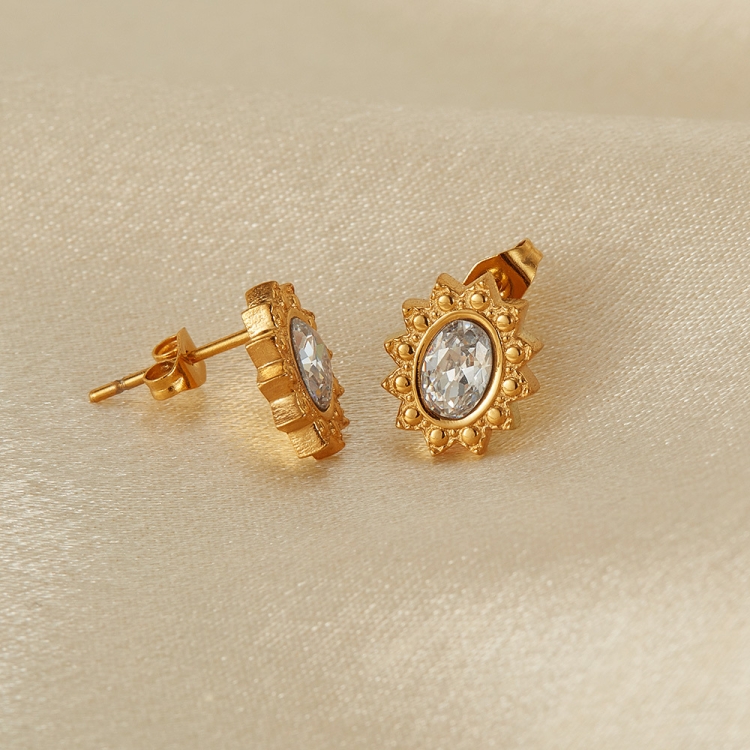 OPK GE944 1pair Vintage Simple Diamond Earrings Stainless Steel Gold-Plated Earrings
