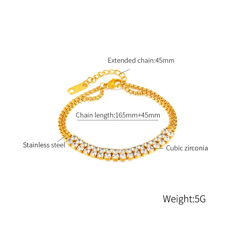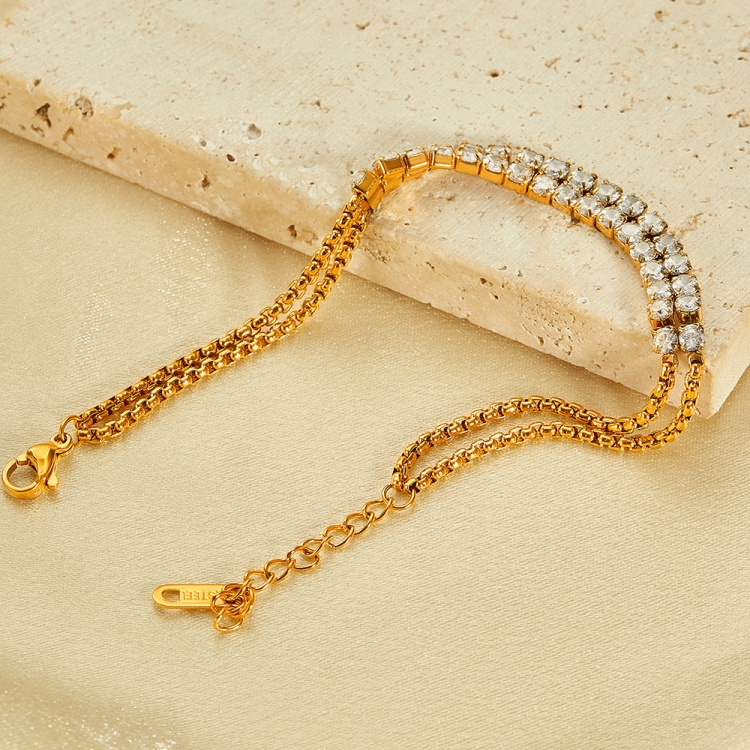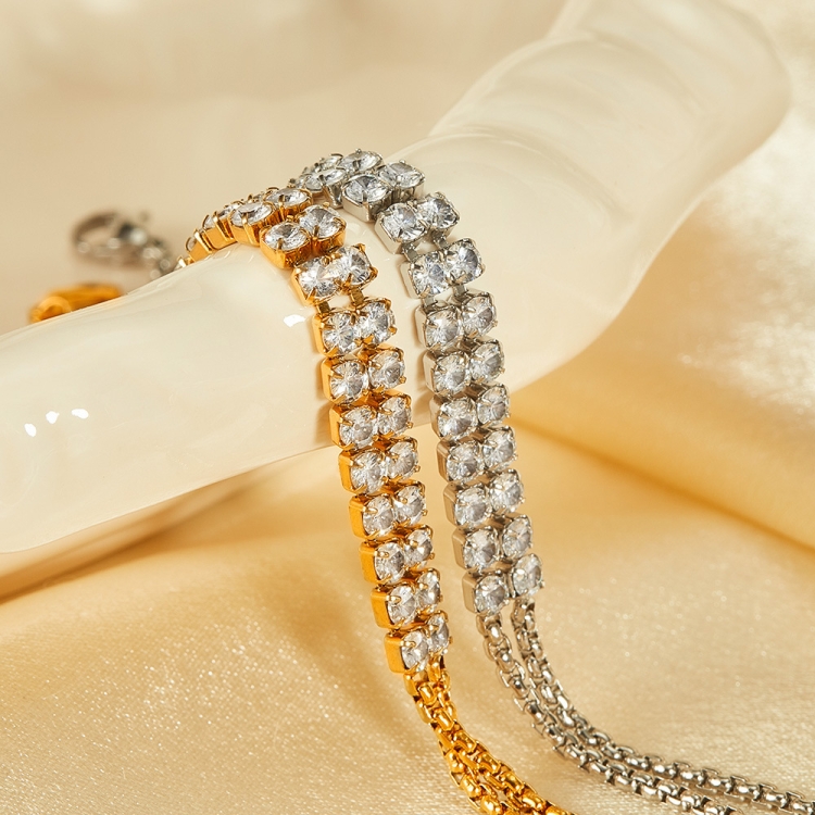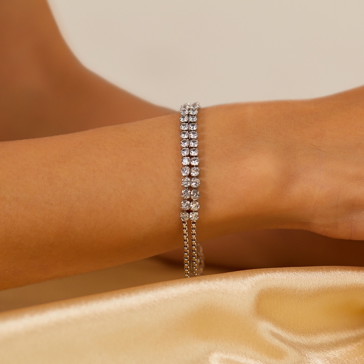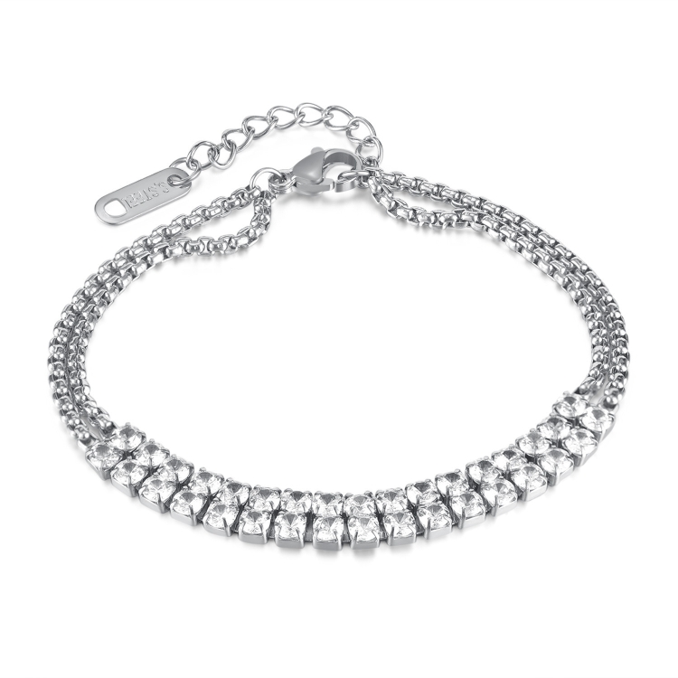 OPK GS1523 Stainless Steel Double Chain Double Row Diamonds Simple Bracelet