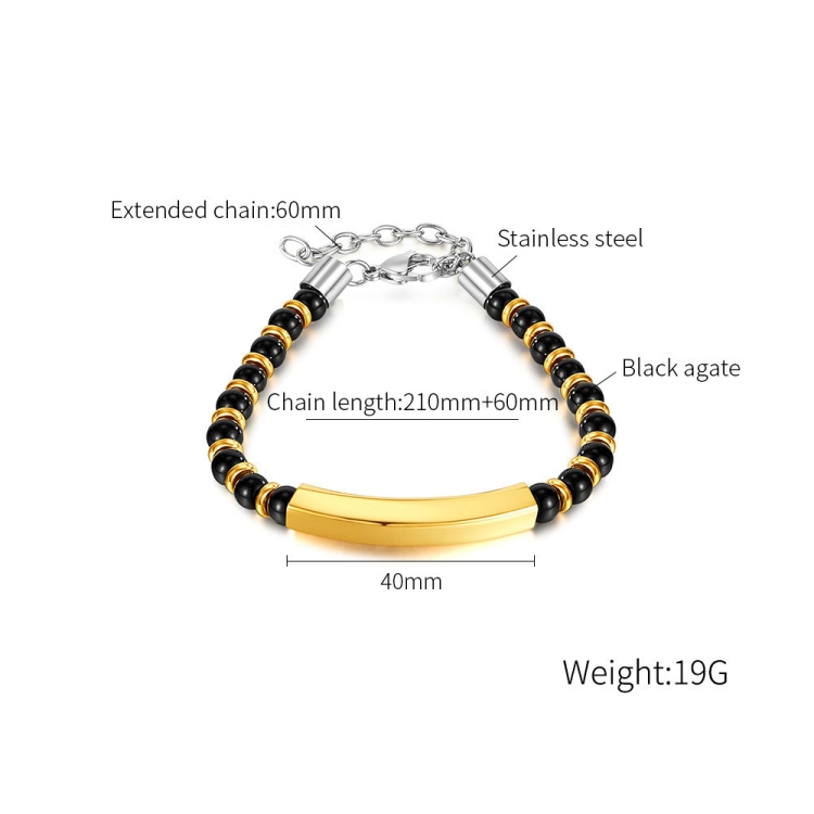 OPK GS1552 Stainless Steel Onyx Beaded Bracelet