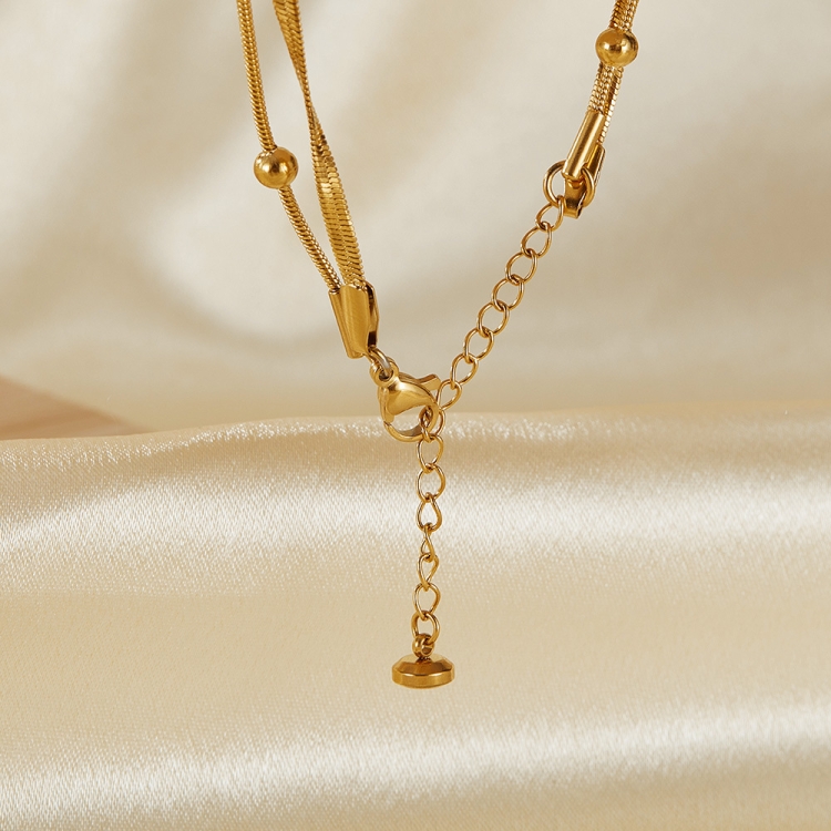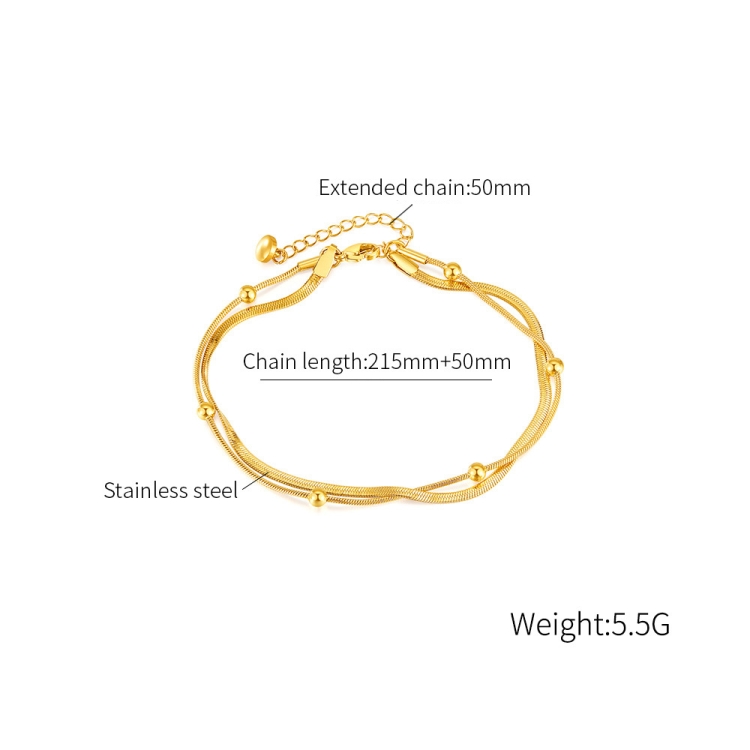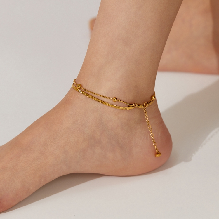 OPK GZ198 Simple Stainless Steel Double Layers Beads Anklets