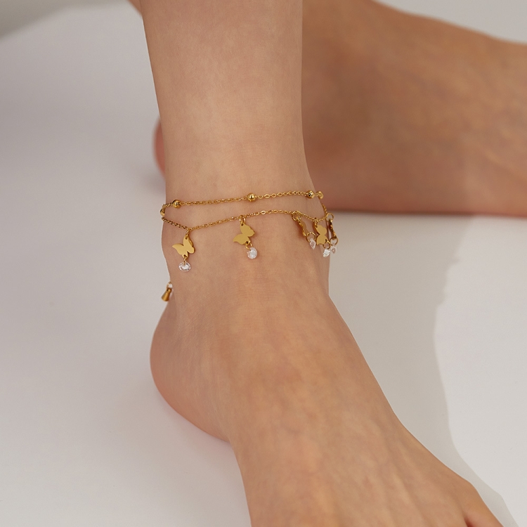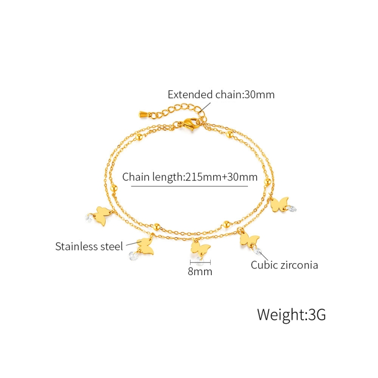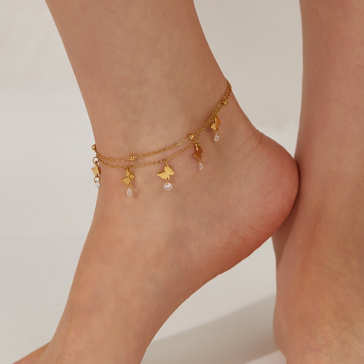 OPK GZ200 Double Layers Stainless Steel Butterfly Anklets