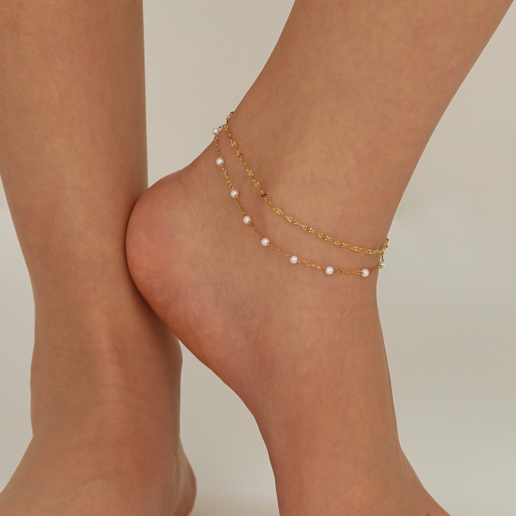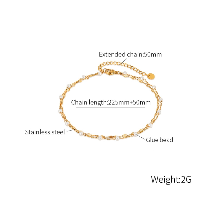 OPK GZ205 Personalized Stainless Steel Temperament Double Layer Stacked Pearl Anklets