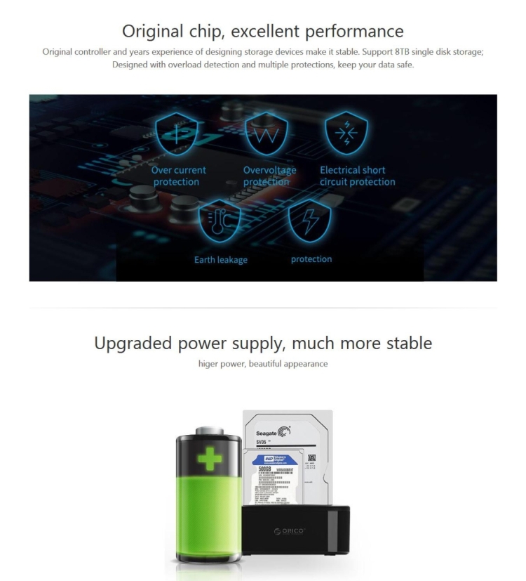 5. Original chip, excellent performance: Original controller and years experience of designing storage devices make it stable. Support 8TB single disk storage; Designed with overload detection and multiple protections, keep your data safe.