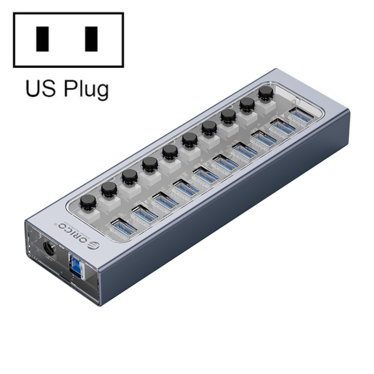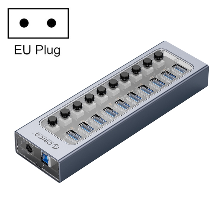 ORICO AT2U3-10AB-GY-BP 10 Ports USB 3.0 HUB with Individual Switches & Blue LED Indicator, EU Plug