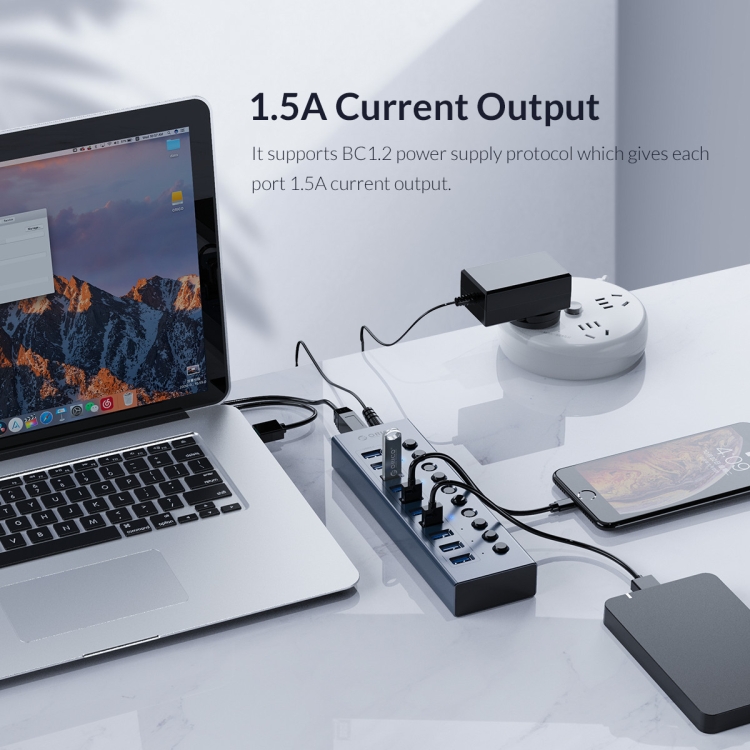ORICO BT2U3-13AB-GY-BP Multi-Ports Individual Switches HUB, UK Plug