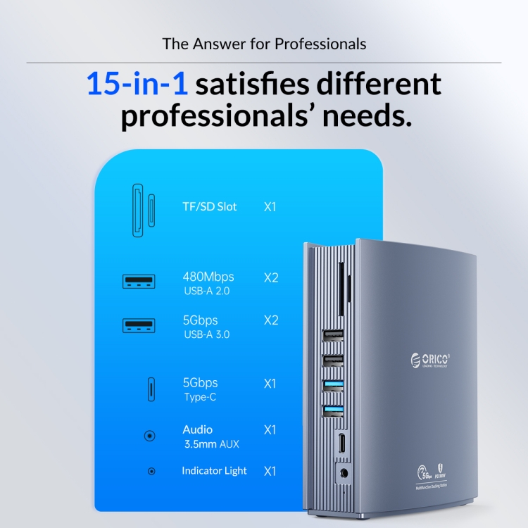 ORICO CDH-15N-GY-BP 15 in 1 Type-C HUB Docking Station