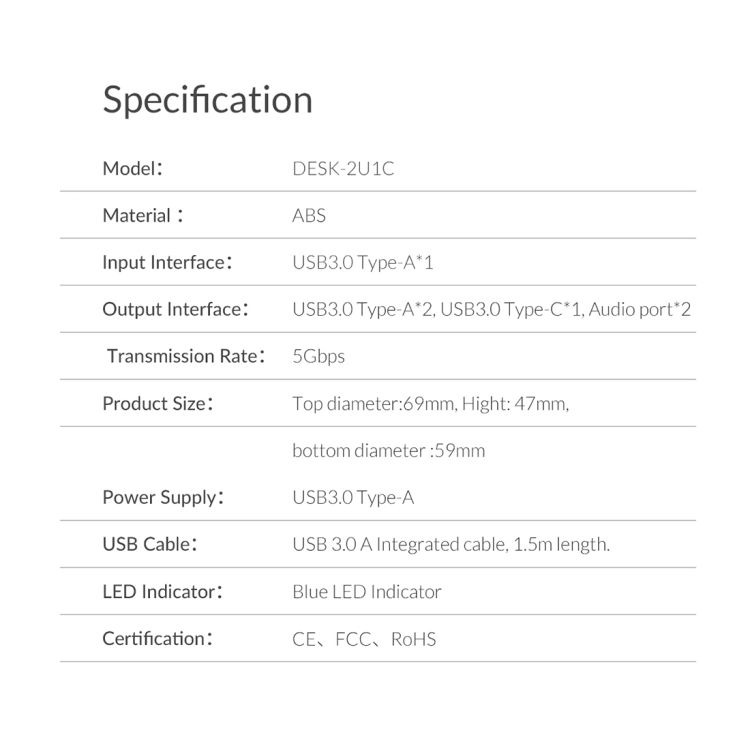 ORICO DESK-2U1C Desktop Power Grommet Multi-Function HUB