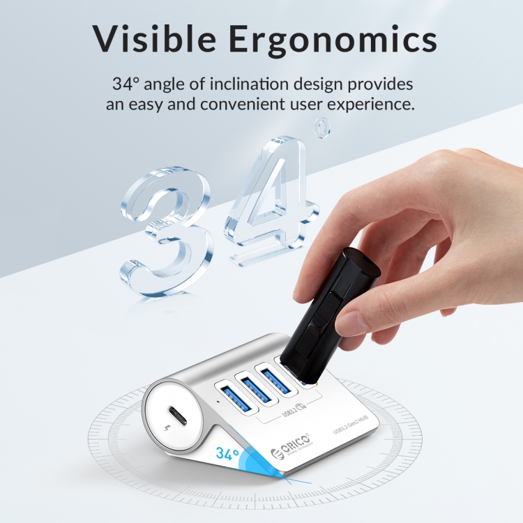 4. 5V 2A Power Supply Interface: ORICO USB 3.2 aluminum Hub reserved USB-C 5V power supply interface, can be external 5V 2A power supply sufficient to ensure the normal operation of high-power USB devices; (This product package does not include the power adapter) Support hot-plug, no driver.