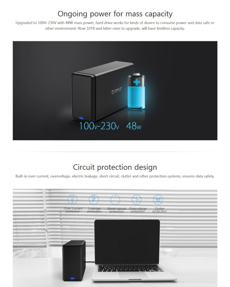 8. Ongoing power for mass capacity: Upgraded to 100V-230V with 48W mass power, hard drive works for kinds of device to consume power and data safe or other environment. Now 10TB and latter ones to upgrade, will have limitless capacity.