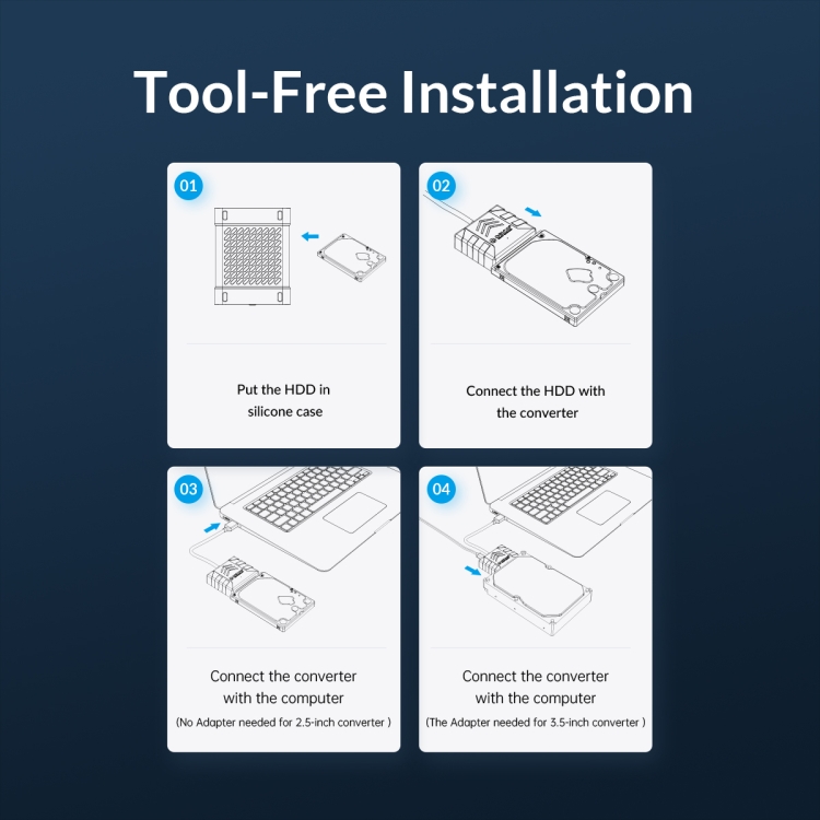 1. Support Devices: 2.5/3.5-inch SATA HDD/SSD PC/Laptop CD-ROM Drives