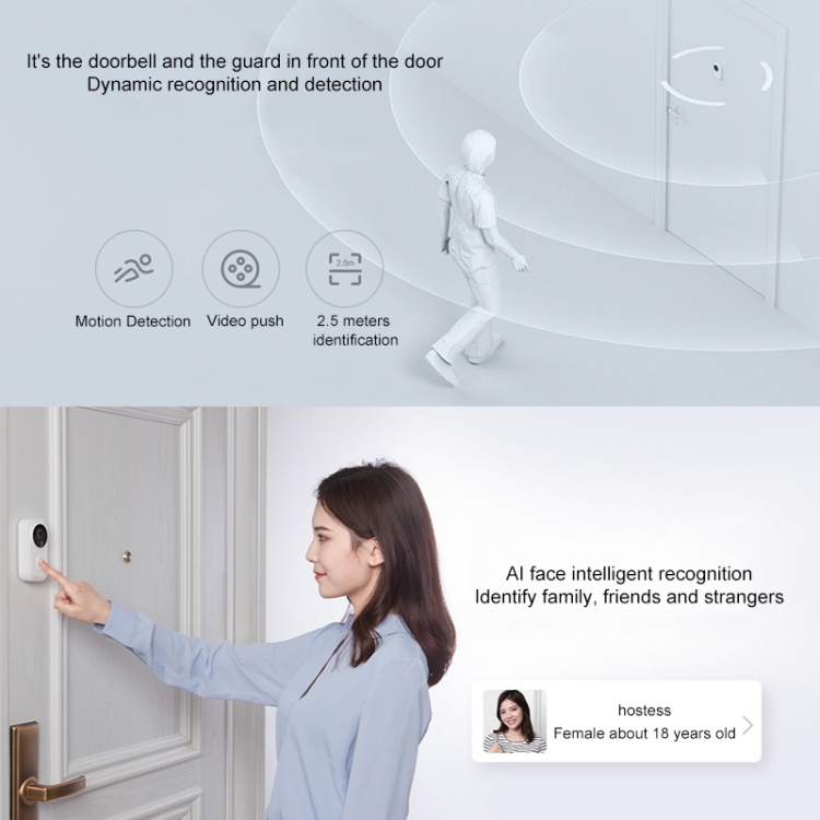 Original Xiaomi Mijia 1280x720P Smart Video Visual Doorbell with Doorbell Receiver, Support Infrared Night Vision & Change Voice Intercom & Real-time Video Viewing