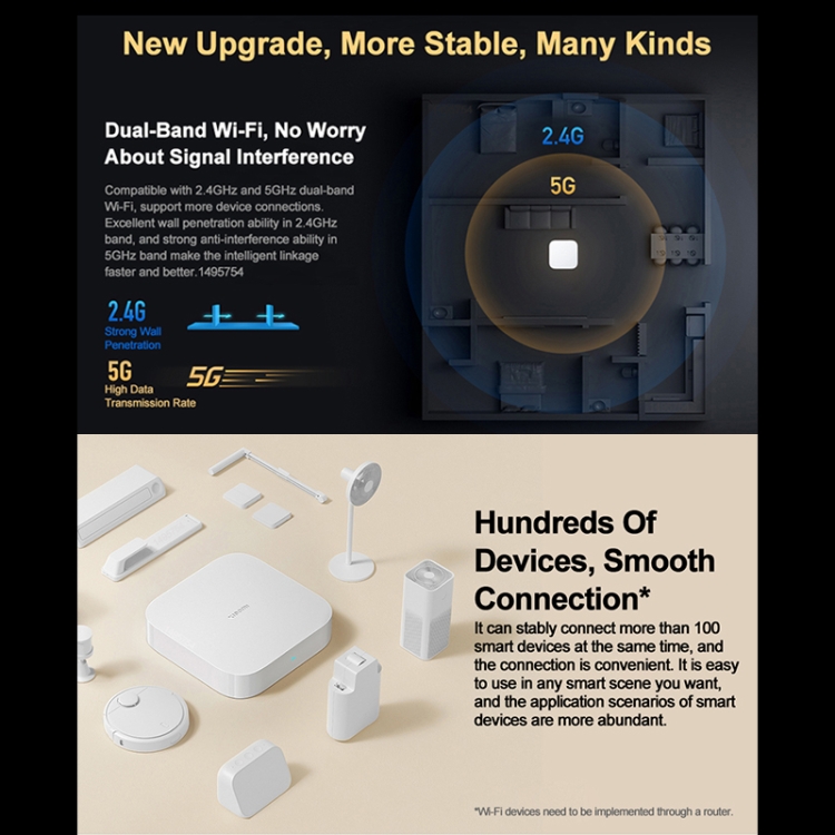1. 2.4/5.0G dual band WiFi, stable connection