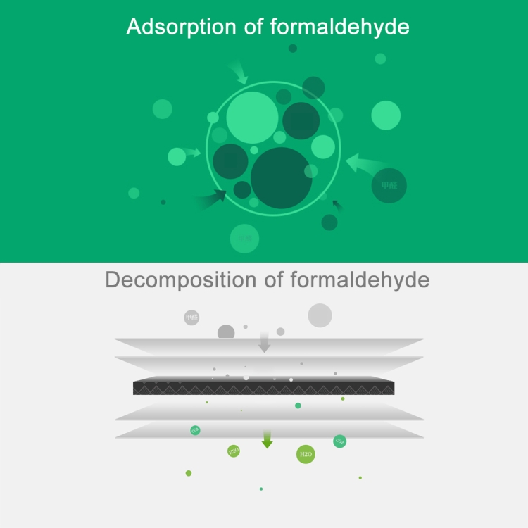 3. Compared to the standard version, this item adds accelerant material, and hence has stronger decontamination capacity to absorb formaldehyde and PM2.5, decompose then into carbon dioxide and water.