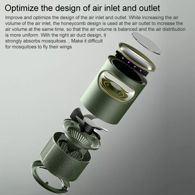 6. The air outlet adopts honeycomb design while increasing the air output, the air distribution is more even, and the mosquitoes are strongly adsorbed