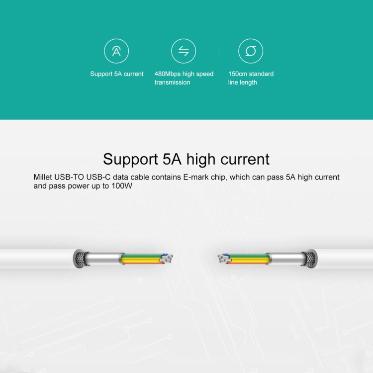 1. E-mark chip is included, which can pass 5A high current, and the power can reach 100W.