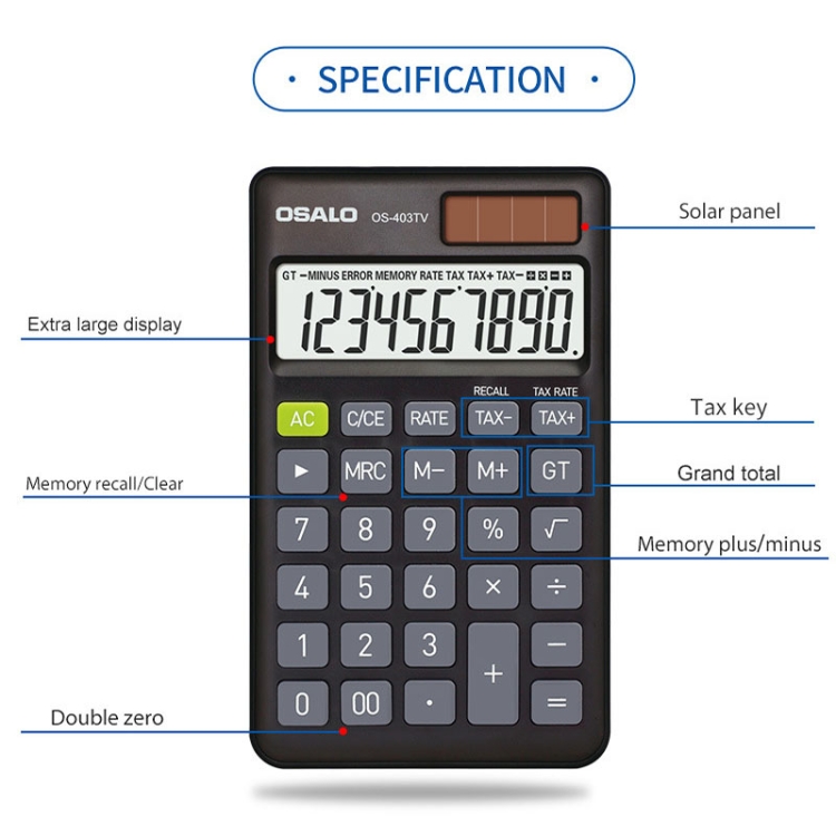 OSALO OS-403TV 10-digit LCD Screen Solar Dual Power Supply Mini Student Desktop Calculator