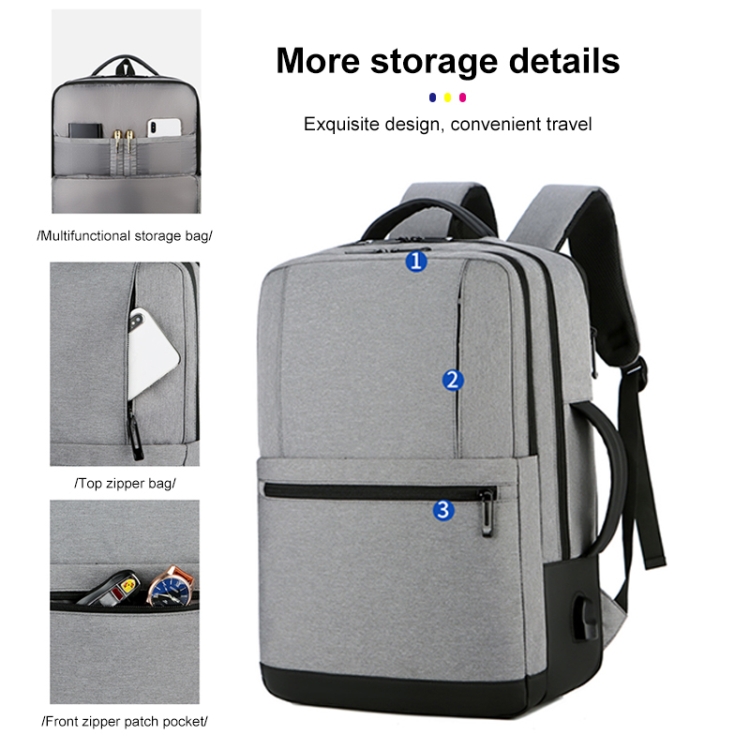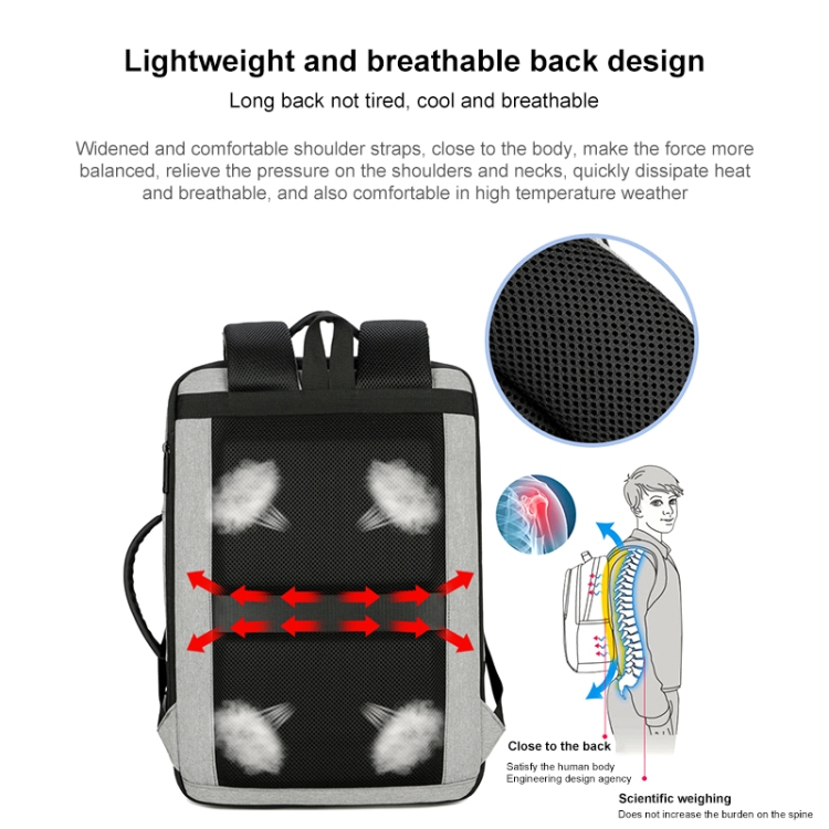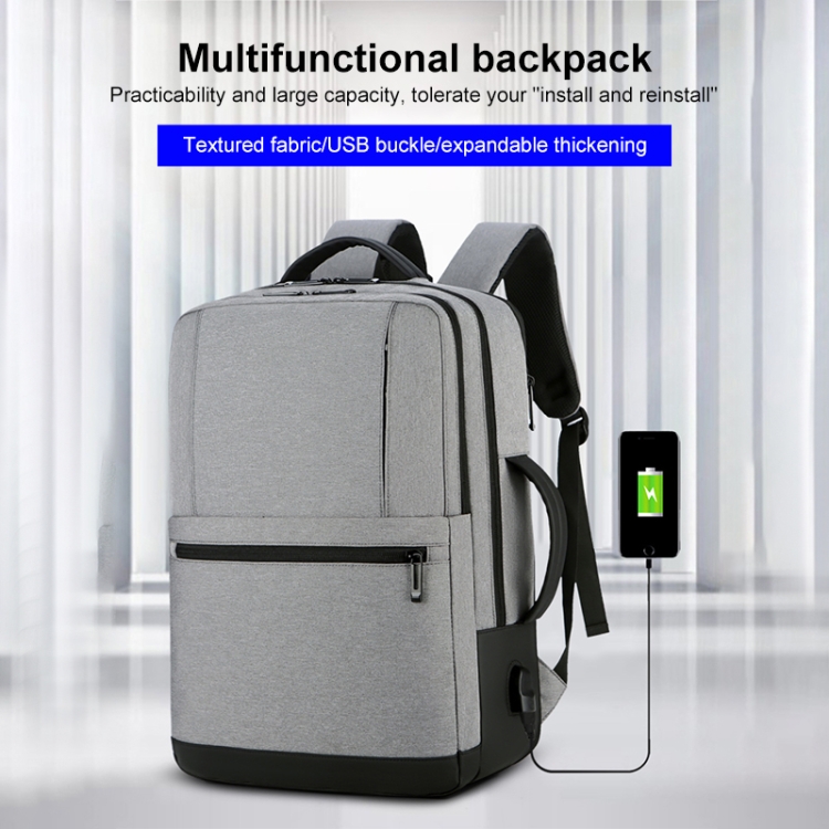 OUMANTU 1908 Large Capacity Men Laptop Backpack Business Travel Shoulders Bag with External USB Charging Port
