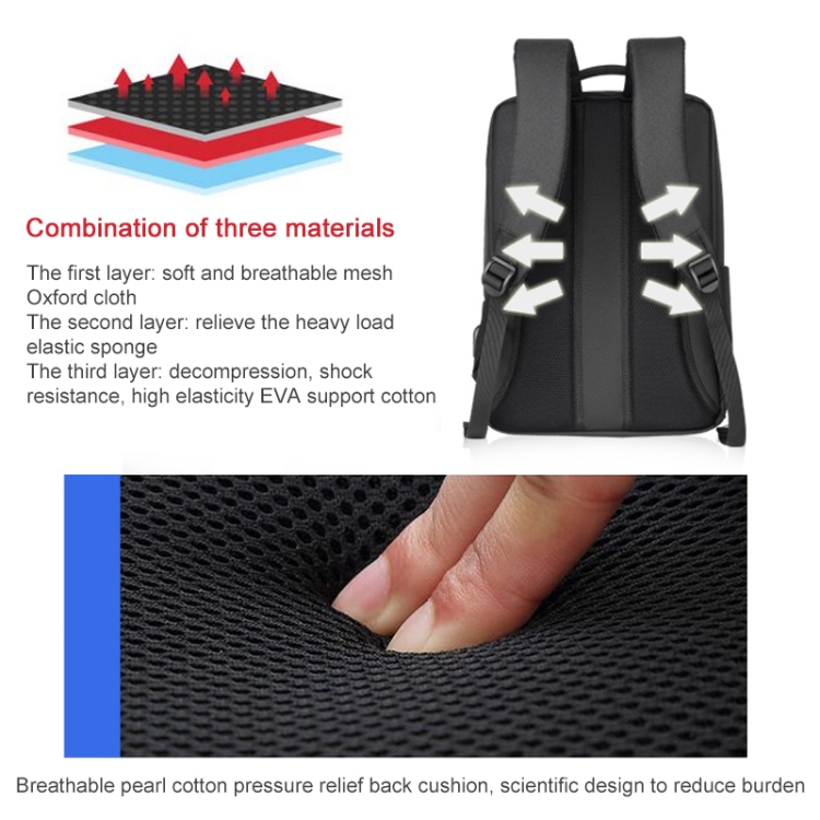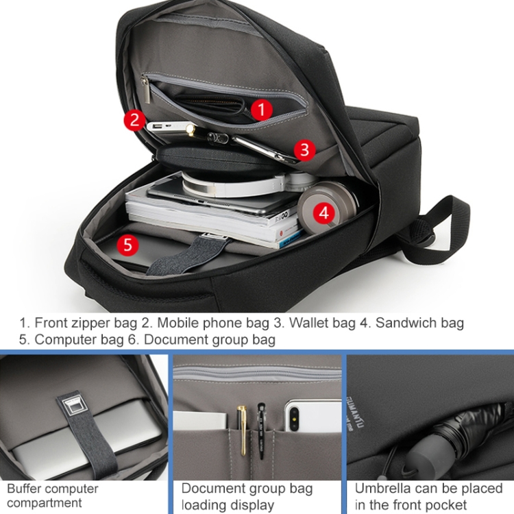 OUMANTU 9003 Business Laptop Bag Oxford Cloth Large Capacity Backpack with External USB Port