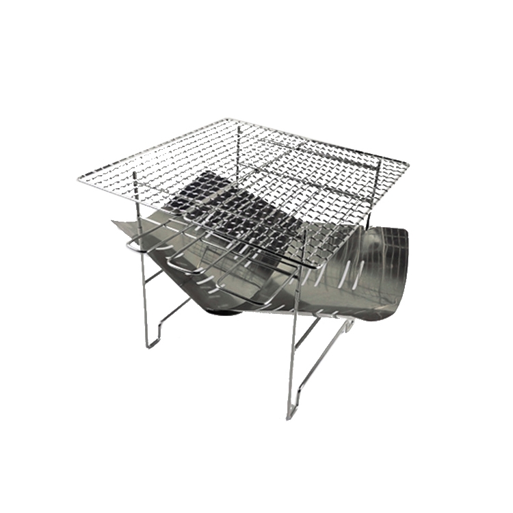 Outdoor Camp Portable Folding Stainless Steel Barbecue Charcoal Grill + Wire Mesh