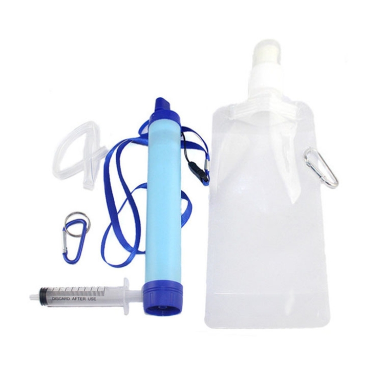 3. Set includes: water purifier, water bag, washer, hose. Carabiner.