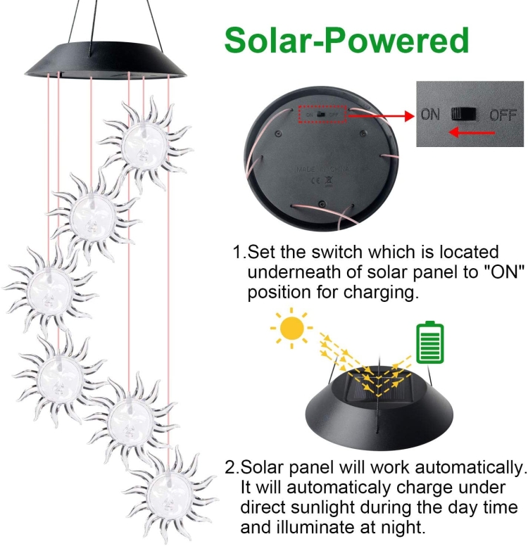 Outdoor Colorful LED Solar Wind Chime Light Garden Park Decorative Waterproof Light