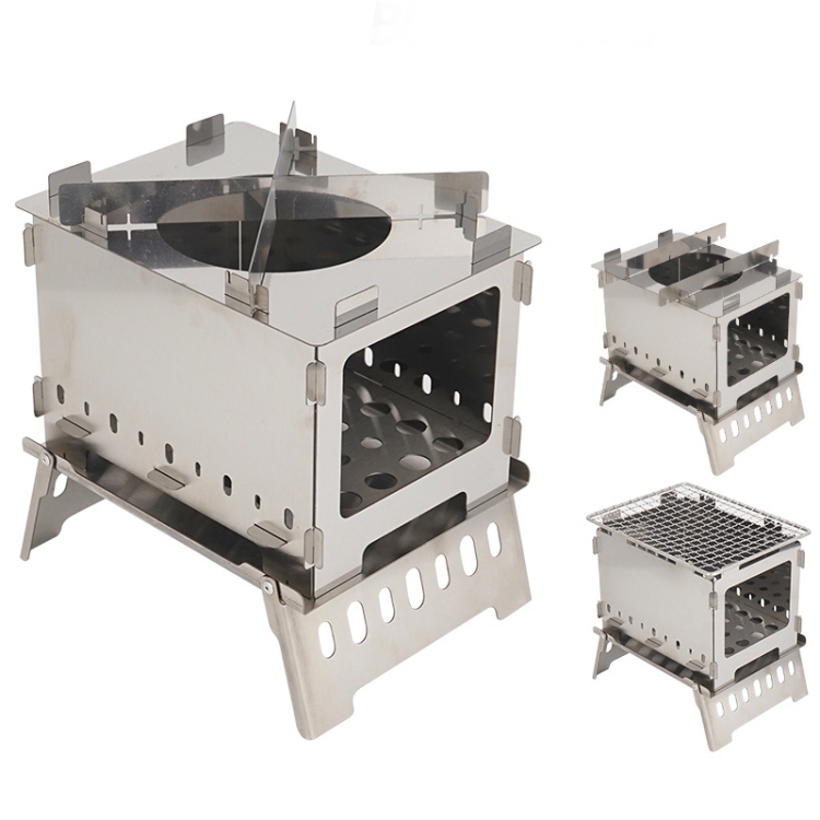 Outdoor Folding Card Stove Barbecue Rack Camping Windproof Burning Fire Station