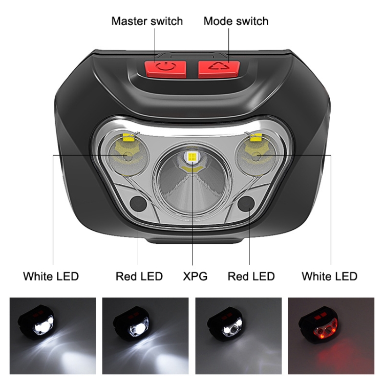6. 6 gears: full white light / XPG white light / LED white light / white light flashing / red light always on / red light flashing