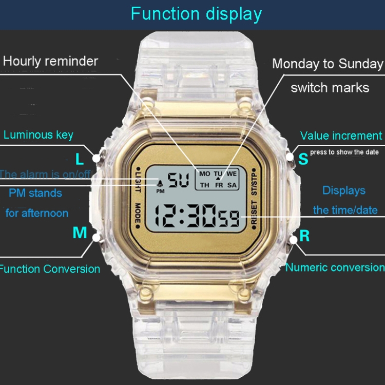 Outdoor Sports Simple Transparent Case Waterproof Luminous Electronic Watch